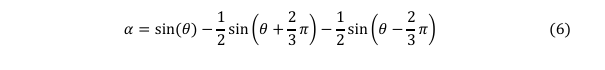 To convert each phase into 𝛼𝛽 plane we need to use trigonometric projection (a fancy term for basic trigo). The three-phases signals A, B and C can be represented as vectors, and projecting them onto the 𝛼𝛽 plane simply involves multiplying their magnitudes by cos𝜃