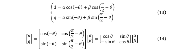 Fig. (c) illustrates the relationship between the 𝛼𝛽-axes and the 𝑑𝑞-axes, using the commutation angle, which determines the direction of the magnetic field.