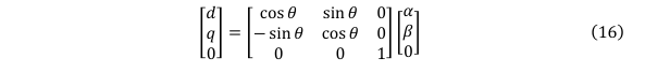 Based on Eq. (14), Eq. (15), and the explanation above, the full Park transformation matrix (also known as 𝑑𝑞0 transformation matrix) is: