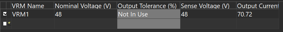 Added the VRM (Voltage Regulator Module) as the power supply: 48 V, 70.72 A.