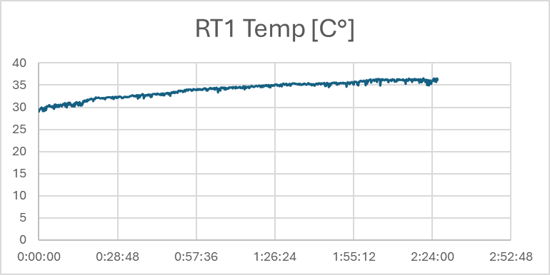 The first thermistor was placed on the Q17 case, and here is the result:
